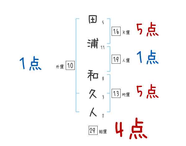 田浦和久人さんの画数の鑑定結果