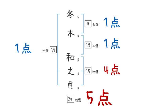天運![]() | 冬木和之月さんの天運は9画の1つ星!消極的で才能を発揮することが苦手なことも。周りの意見に耳を傾けましょう。 家系が持つ宿命的な運勢を表します。祖先から受け継いだ苗字ですので自分の力が及びません。家柄を象徴します。 |