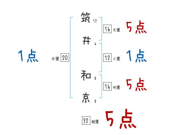 筑井和京さんの画数の鑑定結果
