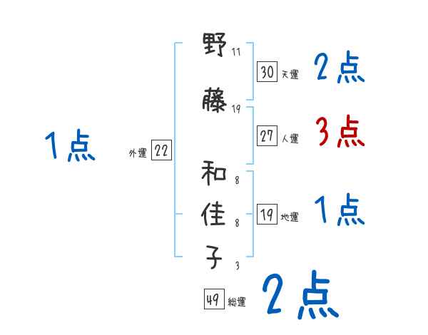 野藤和佳子さんの画数の鑑定結果