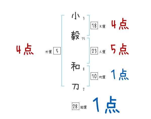 小毅和刀さんの画数の鑑定結果