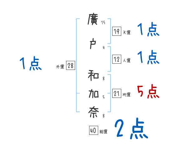 廣戸和加奈さんの画数の鑑定結果