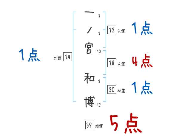 総運![]() | 一ノ宮和博さんの総運は32画の5つ星!柔軟性があり成功する。チャンスが多く金運が良い。 あなたの人生を表す1番重要な運勢です。生涯を通じて影響する総合運となり、主に50歳以降の晩年期に影響を及ぼします。 |