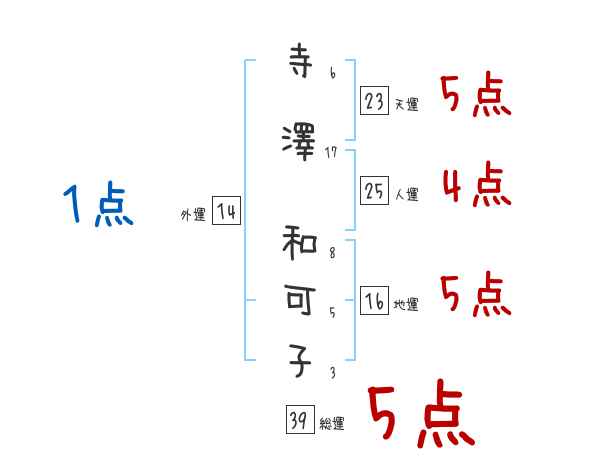 寺澤和可子さんの画数の鑑定結果