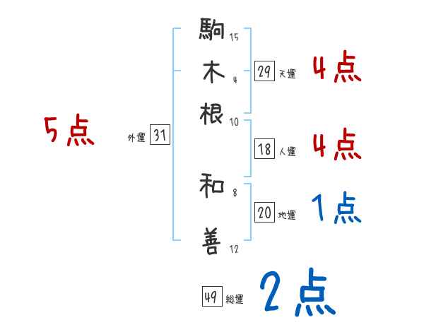 駒木根和善さんの画数の鑑定結果
