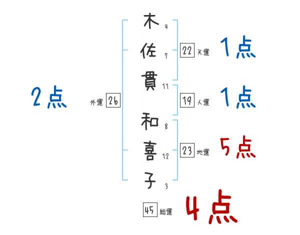 木佐貫和喜子さんの画数の鑑定結果