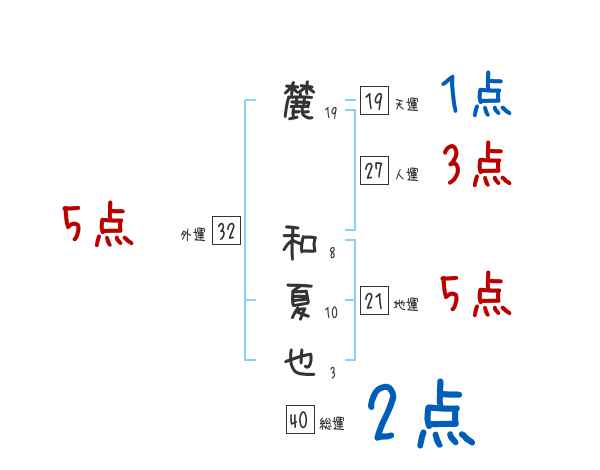 麓和夏也さんの画数の鑑定結果
