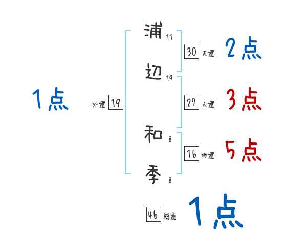 浦辺和季さんの画数の鑑定結果