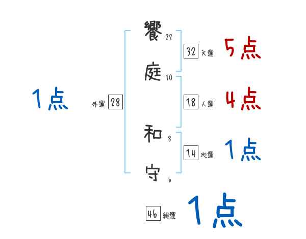 外運![]() | 饗庭和守さんの外運は28画の1つ星!家庭環境に注意。スポーツで活躍できる能力があるかも。 生活面を象徴する運勢です。外部から受ける影響力を表し、結婚運、家庭運や職場、環境への順応性を表します。 |