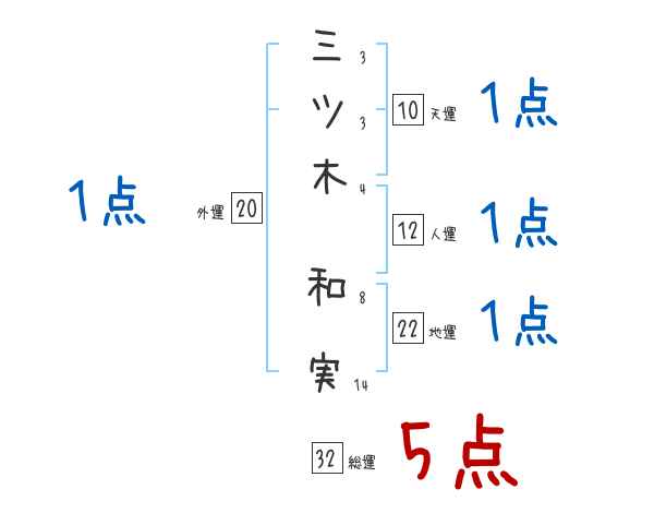 総運![]() | 三ツ木和実さんの総運は32画の5つ星!柔軟性があり成功する。チャンスが多く金運が良い。 あなたの人生を表す1番重要な運勢です。生涯を通じて影響する総合運となり、主に50歳以降の晩年期に影響を及ぼします。 |