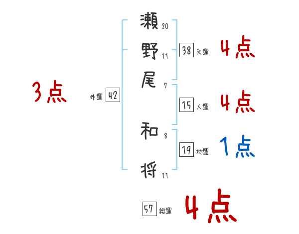 瀬野尾和将さんの画数の鑑定結果