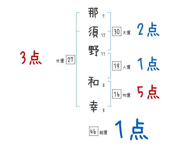 天運![]() | 那須野和幸さんの天運は30画の2つ星!浮き沈みの激しさに注意しましょう。 家系が持つ宿命的な運勢を表します。祖先から受け継いだ苗字ですので自分の力が及びません。家柄を象徴します。 |