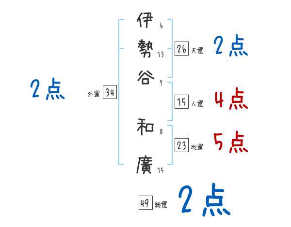 天運![]() | 伊勢谷和廣さんの天運は26画の2つ星!波瀾万丈かも。信頼できる人を大事にしましょう。 家系が持つ宿命的な運勢を表します。祖先から受け継いだ苗字ですので自分の力が及びません。家柄を象徴します。 |