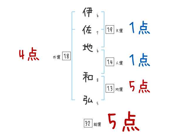 伊佐地和弘さんの画数の鑑定結果