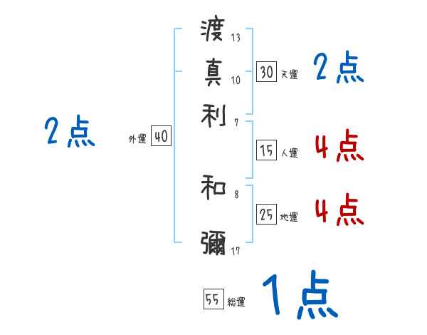渡真利和彌さんの画数の鑑定結果
