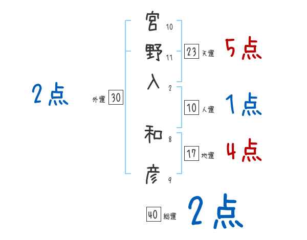 宮野入和彦さんの画数の鑑定結果