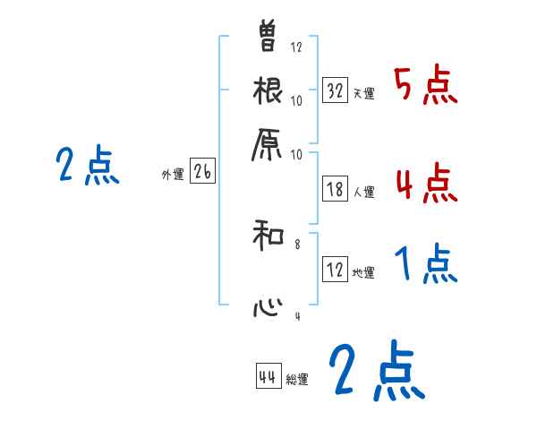 曽根原和心さんの画数の鑑定結果