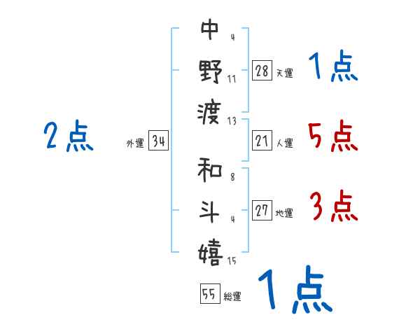 総運![]() | 中野渡和斗嬉さんの総運は55画の1つ星!欲張りな性格で軽率な行動に注意しましょう。病気に気をつけて。 あなたの人生を表す1番重要な運勢です。生涯を通じて影響する総合運となり、主に50歳以降の晩年期に影響を及ぼします。 |