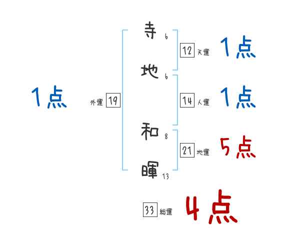 寺地和暉さんの画数の鑑定結果