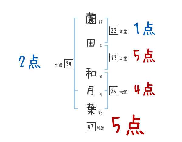 薗田和月葉さんの画数の鑑定結果