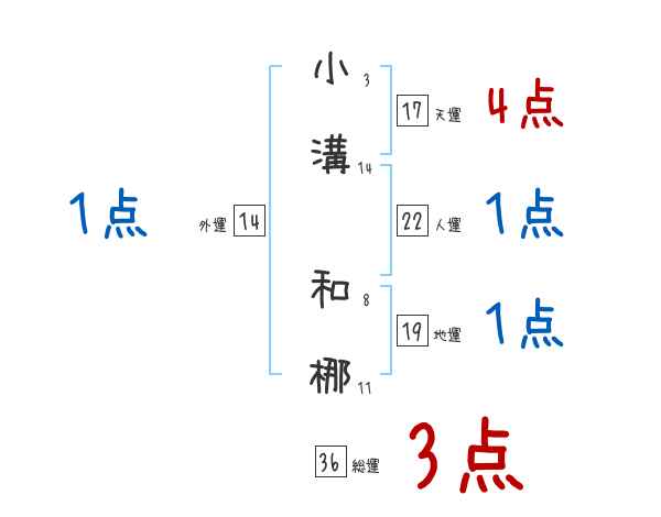 小溝和梛さんの画数の鑑定結果