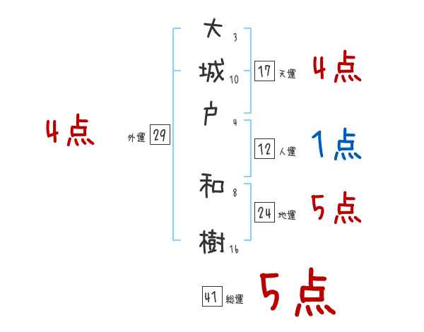 外運![]() | 大城戸和樹さんの外運は29画の4つ星!完全主義で才能がある。厳格な心の持ち主。 生活面を象徴する運勢です。外部から受ける影響力を表し、結婚運、家庭運や職場、環境への順応性を表します。 |