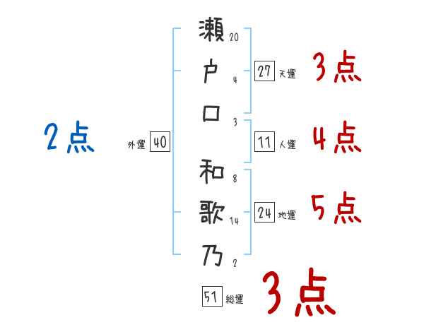瀬戸口和歌乃さんの画数の鑑定結果