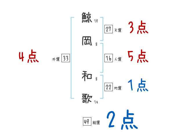 鯨岡和歌さんの画数の鑑定結果