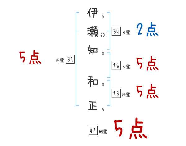伊瀬知和正さんの画数の鑑定結果