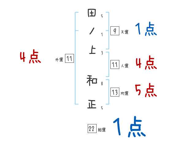 田ノ上和正さんの画数の鑑定結果