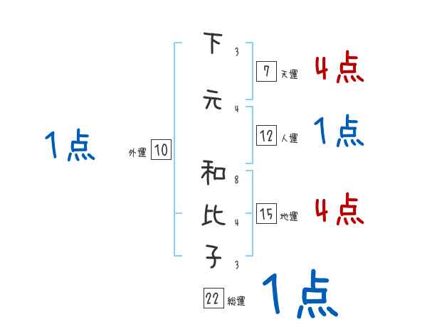 天運![]() | 下元和比子さんの天運は7画の4つ星!強い意志や信念を持ち独立心が強い。自立する。 家系が持つ宿命的な運勢を表します。祖先から受け継いだ苗字ですので自分の力が及びません。家柄を象徴します。 |
