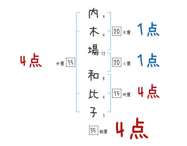 地運![]() | 内木場和比子さんの地運は15画の4つ星!人徳があり出世する。順調に物事を進め円満な人生。 個性を表す基礎的な運勢です。性格形成や対人関係、行動力など家庭環境に影響されます。主に誕生してから20歳くらいまでの若年期の運勢を表します。 |