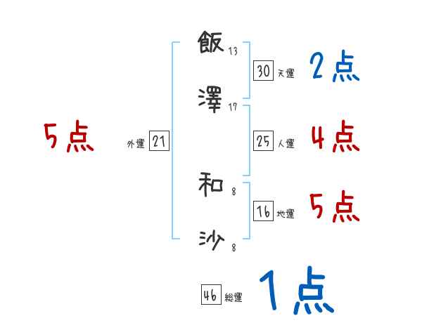 飯澤和沙さんの画数の鑑定結果