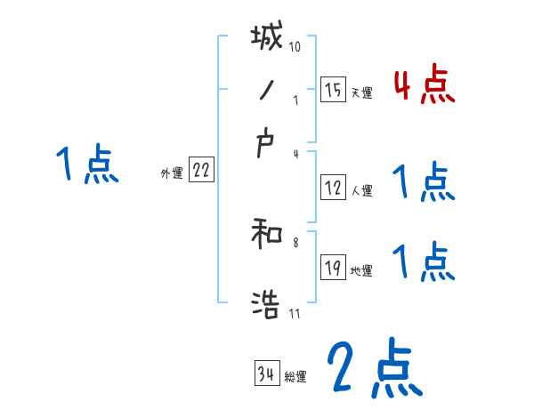 天運![]() | 城ノ戸和浩さんの天運は15画の4つ星!人徳があり出世する。順調に物事を進め円満な人生。 家系が持つ宿命的な運勢を表します。祖先から受け継いだ苗字ですので自分の力が及びません。家柄を象徴します。 |
