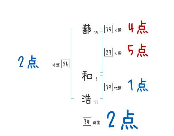 人運![]() | 蔀和浩さんの人運は23画の5つ星!想像力に優れ活力がある。一代で成功し名誉を手に入れる。 性格や才能などを表す2番目に重要な運勢です。人間関係や協調性、社会的な成功に影響します。主に20歳から50歳ぐらいまでの中年期の運勢を表します。 |