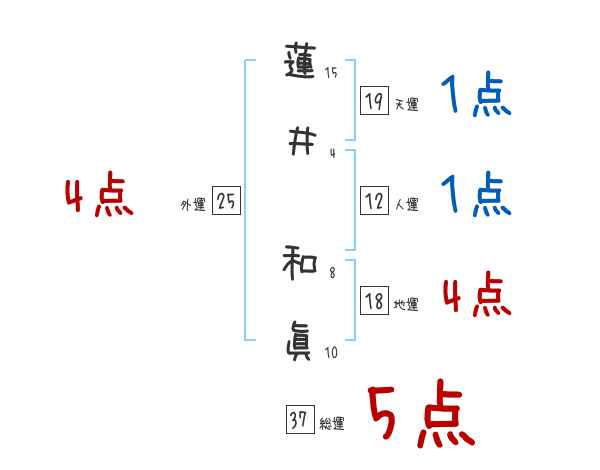 天運![]() | 蓮井和眞さんの天運は19画の1つ星!優れた才能を持ちますが、協調性が足りないことも。周りの人と協力する事を意識しましょう。 家系が持つ宿命的な運勢を表します。祖先から受け継いだ苗字ですので自分の力が及びません。家柄を象徴します。 |