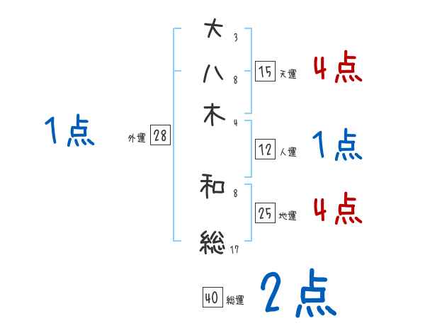 外運![]() | 大八木和総さんの外運は28画の1つ星!家庭環境に注意。スポーツで活躍できる能力があるかも。 生活面を象徴する運勢です。外部から受ける影響力を表し、結婚運、家庭運や職場、環境への順応性を表します。 |