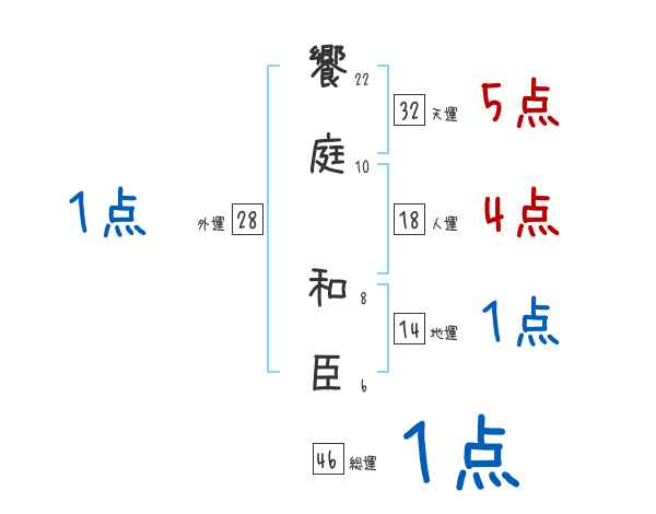 饗庭和臣さんの画数の鑑定結果