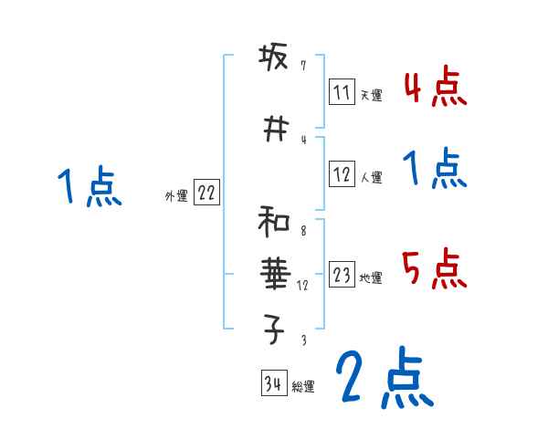 天運![]() | 坂井和華子さんの天運は11画の4つ星!着実に富や地位を得る幸運な人生。 家系が持つ宿命的な運勢を表します。祖先から受け継いだ苗字ですので自分の力が及びません。家柄を象徴します。 |