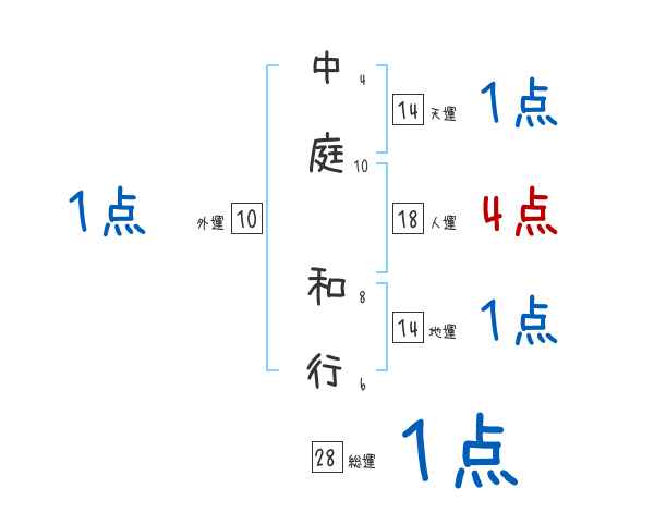 中庭和行さんの画数の鑑定結果