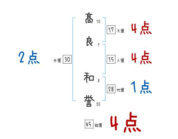 人運![]() | 髙良和誉さんの人運は15画の4つ星!人徳があり出世する。順調に物事を進め円満な人生。 性格や才能などを表す2番目に重要な運勢です。人間関係や協調性、社会的な成功に影響します。主に20歳から50歳ぐらいまでの中年期の運勢を表します。 |
