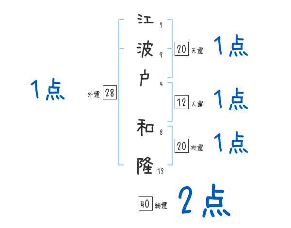 天運![]() | 江波戸和隆さんの天運は20画の1つ星!社交が苦手。人とは違った才能があり波乱万丈な人生かも。 家系が持つ宿命的な運勢を表します。祖先から受け継いだ苗字ですので自分の力が及びません。家柄を象徴します。 |