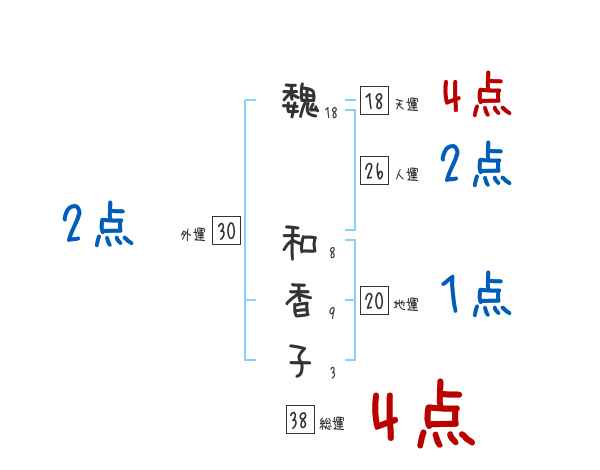 魏和香子さんの画数の鑑定結果