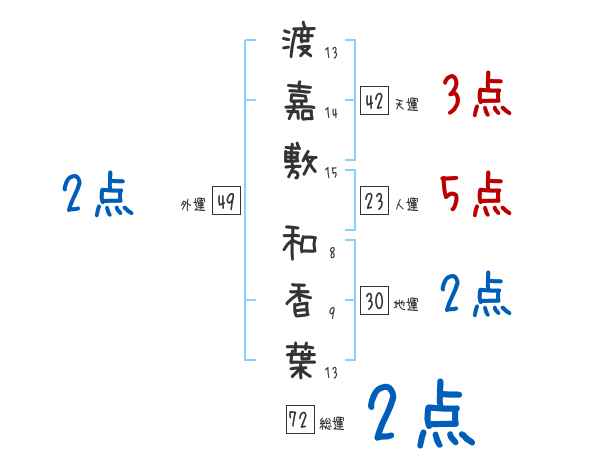 渡嘉敷和香葉さんの画数の鑑定結果