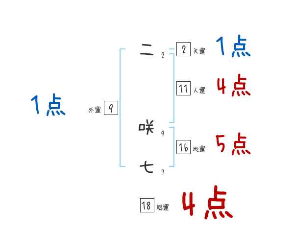 二咲七さんの画数の鑑定結果