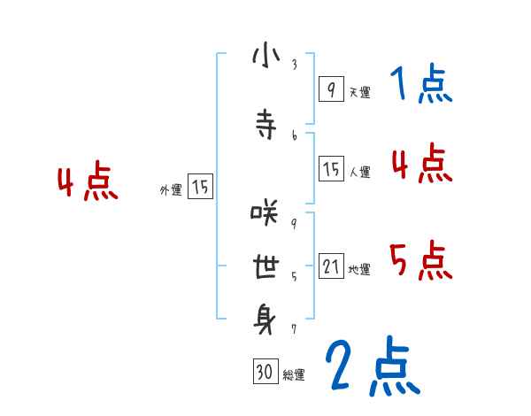 外運![]() | 小寺咲世身さんの外運は15画の4つ星!人徳があり出世する。順調に物事を進め円満な人生。 生活面を象徴する運勢です。外部から受ける影響力を表し、結婚運、家庭運や職場、環境への順応性を表します。 |