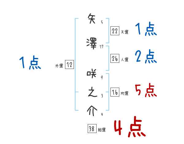 矢澤咲之介さんの画数の鑑定結果