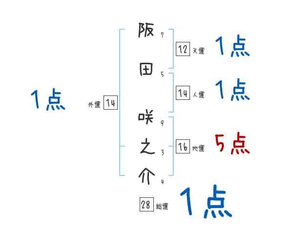 総運![]() | 阪田咲之介さんの総運は28画の1つ星!家庭環境に注意。スポーツで活躍できる能力があるかも。 あなたの人生を表す1番重要な運勢です。生涯を通じて影響する総合運となり、主に50歳以降の晩年期に影響を及ぼします。 |