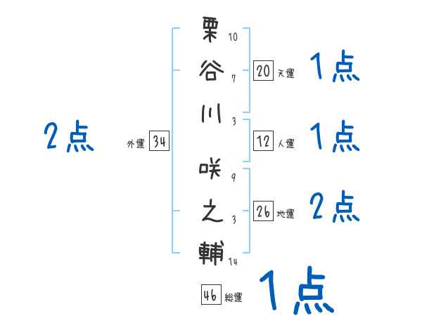 栗谷川咲之輔さんの画数の鑑定結果