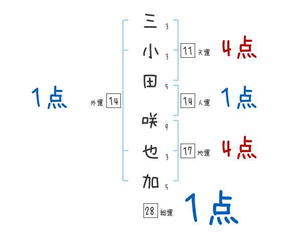 三小田咲也加さんの画数の鑑定結果
